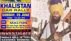 1985 में एयर इंडिया बम धमाकों के कथित मास्टरमाइंड तलविंदर परमार का महिमामंडन करते हुए खालिस्तान समर्थक रैली के पोस्टर कनाडा में कई जगहों पर देखे गए। पोस्टर में अलगाववादी नेता को ‘शहीद भाई तलविंदर परमार’ के रूप में संदर्भित किया गया और 25 जून को दोपहर 12.30 बजे एक कार रैली को लेकर विज्ञापन दिया गया है। इसके अलावा, पोस्टर ने 1985 कनिष्क बम विस्फोट में भारत की भूमिका की जांच की मांग की गई। ब्रिटेन और अमेरिका के अलावा कनाडा में भारतीय उच्चायोग पर खालिस्तान समर्थक हमलों के बीच यह घटनाक्रम सामने आया है।