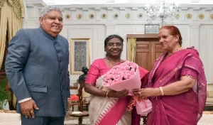 नयी दिल्ली। उपराष्ट्रपति जगदीप धनखड़ और उनकी पत्नी सुदेश धनखड़ ने मंगलवार को राष्ट्रपति भवन में राष्ट्रपति द्रौपदी मुर्मू से भेंट की और उनके 65वें जन्मदिन पर उन्हें बधाई दी। धनखड़ ने बाद में ट्वीट किया, ‘‘ माननीय राष्ट्रपति द्रौपदी मुर्मू जी को जन्मदिन की बधाई। उनकी अच्छी सेहत की कामना करता हूं। वह हमारे राष्ट्र का मार्गदर्शन गरिमा और बुद्धिमता के साथ करती रहें।’’