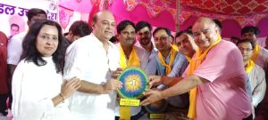 सर्वप्रथम व्यापार मंडल के पदाधिकारियों द्वारा आये हुए अतिथियों का माल्यार्पण कर पटका पहनाकर ओर मोमेंटो देकर सम्मान किया गया।