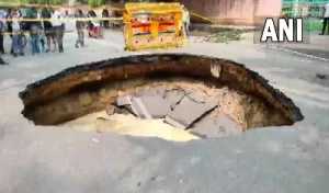 दिल्ली के जनकपुरी में सोमवार सुबह सड़क का एक बड़ा हिस्सा धंस गया। हालाँकि, घटना में किसी के घायल होने की सूचना नहीं है। अधिकारियों ने इलाके के चारों ओर बैरिकेड लगा दिए हैं। घटना सुबह करीब 7.45 बजे की है। इस घटना के कारण इलाके में यातायात जाम हो गया। सड़क पूरी तरह से क्षतिग्रस्त हो गयी है। यह घटना पोसिंगी चौक के पास हुई जो कई स्कूलों और पार्कों से घिरा हुआ है। यह गुफे के आकार का है और इसके दृश्य सोशल मीडिया पर वायरल हो रहे हैं। राष्ट्रीय राजधानी में बुधवार सुबह 8.30 बजे समाप्त 24 घंटे की अवधि में 0.2 मिमी बारिश दर्ज की गई।