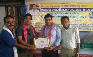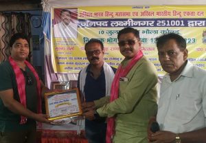 *अखिल भारतीय हिंदू एकता दल व अखिल भारतीय हिंदू महासभा द्वारा संचालित कांवड सेवा शिविर मे अतिथियों को किया सम्मानित*