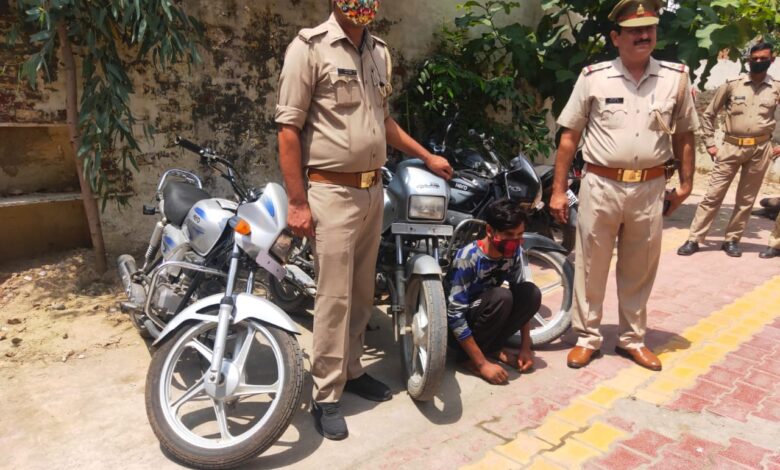 "01 शातिर वाहन चोर अभियुक्त गिरफ्तार, कब्जे 03 चोरी की मो0सा0 व अवैध शस्त्र बरामद"