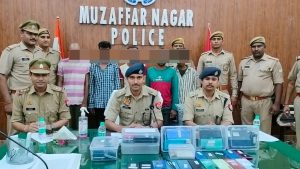 अवगत कराना है कि जनपद मुजफ्फरनगर में शातिर चोर/लूटेरे अभियुक्तों की गिरफ्तारी हेतु वरिष्ठ पुलिस अधीक्षक संजीव सुमन के निर्देशन में चलाये जा रहे अभियान के अन्तर्गत पुलिस अधीक्षक नगर के निकट पर्यवेक्षण व सहायक पुलिस अधीक्षक/क्षेत्राधिकारी नगर के कुशल नेतृत्व में आज दिनांक 19.07.2023 को थाना सिविल लाईन पुलिस द्वारा कांवड यात्रा-2023 के दौरान शिविरों से मोबाईल चोरी होने के 05 अभियोगों का सफल अनावरण करते हुए 05 शातिर मोबाईल चोर अभियुक्तों को गिरफ्तार किया गया। गिरफ्तार अभियुक्तगण के कब्जे से चोरी किए गए 100 मोबाईल फोन को बरामद किया गया। गिरफ्तारी एवं बरामदगी के सम्बन्ध में थाना सिविल लाईन पुलिस द्वारा अग्रिम विधिक कार्यवाही की जा रही है।