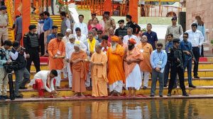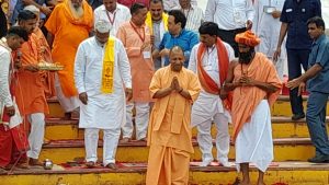 सीएम योगी ने गंगा घाट पर की पूजा अर्चना, देखिए कार्यक्रम की कुछ झलकियां