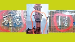 यहां पर ऊं की आकृति भी बनी है। स्थानीय न्यायालय में चल रहे वाद में वादी पक्ष इन चिह्नों को साक्ष्य के तौर पर प्रस्तुत कर चुके हैं। पांच और छह अगस्त को वृंदावन के चिंतामणि कुंज में इन प्रतीक चिह्नों के चित्रों की प्रदर्शनी आम लोगों के लिए लगाई जाएगी। वादी पक्ष का दावा है कि 1670 में श्रीकृष्ण जन्मस्थान परिसर स्थित ठाकुर केशवदेव मंदिर को तोड़कर उसके ऊपर शाही मस्जिद ईदगाह खड़ी कर दी गई।
