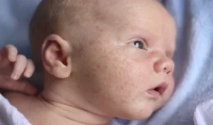 नवजात बच्चे की गर्दन पर रैशेज होने पर दाने पड़ सकते हैं।