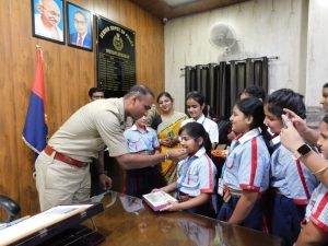 रक्षाबंधन पर्व 2023 के उपलक्ष्य में एमजी वर्ड, जीडी गोयन्का एवं शारदेन स्कूल मुजफ्फरनगर की छात्राओं द्वारा आज दिनांक 29.08.2023 को पुलिस कार्यालय में वरिष्ठ पुलिस अधीक्षक मुजफ्फरनगर संजीव सुमन को रक्षाबंधन पर्व की शुभकामनाएँ देते हुए राखी बाँध कर मिठाई खिलाई गयी तथा जनकल्याण संदेश देते हुए उज्जवल भविष्य की मंगल कामना की गयी। वरिष्ठ पुलिस अधीक्षक महोदय द्वारा समस्त छात्राओं का आभार प्रकट किया गया तथा उन्हें सुरक्षा का आश्वासन देते हुए कहा कि यदि कभी भी कोई समस्या हो तो तत्काल पुलिस को अवगत कराएं अथवा कार्यालय आकर वरिष्ठ पुलिस अधीक्षक से सम्पर्क कर सकते हैं।
