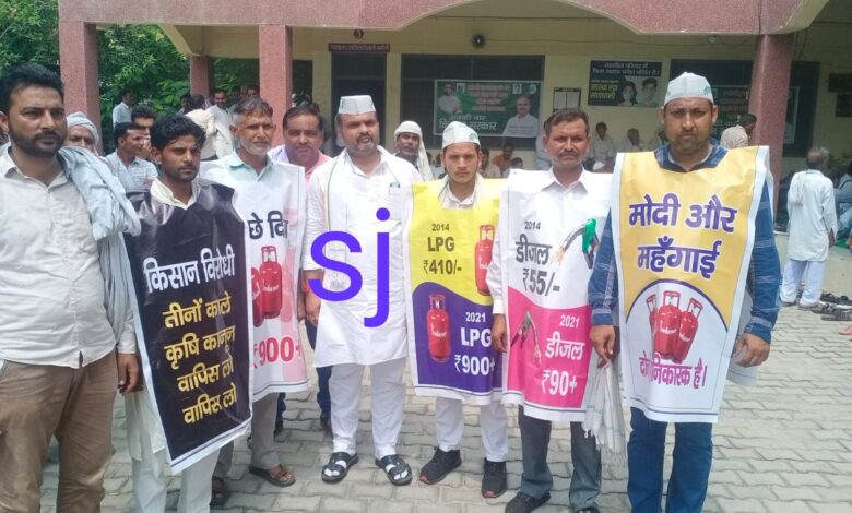 मुजफ्फरनगर–राष्ट्रीय लोक दल के राष्ट्रीय नेतृत्व के आह्वान पर आज जिले की सभी तहसीलों पर लोकदल ने जोरदार धरना प्रदर्शन किया है। मुजफ्फरनगर की खतौली तहसील पर रालोद के प्रदेश प्रवक्ता अभिषेक चौधरी के नेतृत्व में अनोखा प्रदर्शन देखने को मिला है, जहां पर रालोद नेता भैंसा बुग्गी पर सवार होकर धरने पर पहुंचे और अपनी मोटरसाइकिल भी भैंसा बुग्गी पर रखकर लाए साथ ही खाली सिलेंडर व पानी के मटके भी लेकर रालोद नेता धरने पर पहुंचे। रालोद नेताओं का कहना है कि डीजल पेट्रोल महंगा होने के चलते आम लोग इन वाहनों को चलाने में असमर्थ हैं, रालोद नेताओं का कहना है कि प्रधानमंत्री ने उज्ज्वला योजना तो चलाई है लेकिन मेहंगी गैस होने के चलते गरीब आदमी सिलेंडर भरवाने में असमर्थ है, मोदी सरकार में सरसों तेल महंगा हो गया है, अतः पकोड़े तल कर भी आम आदमी अपना पेट नहीं पाल पा रहा है। आज के धरना प्रदर्शन में गैस सिलेंडर के साथ महिलाओं ने भी बढ़ चढ़कर हिस्सा लिया और जोरदार नारेबाजी कर अपना विरोध जताया।।