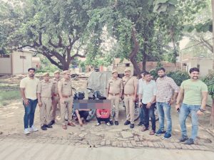 जनपद मुजफ्फरनगर में शातिर चोर/लूटेरे अभियुक्तगण की गिरफ्तारी हेतु वरिष्ठ पुलिस अधीक्षक संजीव सुमन के निर्देशन में चलाये जा रहे अभियान के अन्तर्गत पुलिस अधीक्षक नगर के निकट पर्यवेक्षण एवं क्षेत्राधिकारी नईमण्डी के कुशल नेतृत्व में आज दिनांक 30.08.2023 को थाना नईमण्डी पुलिस द्वारा वाहन चोर गिरोह का पर्दाफाश करते हुए 02 शातिर चोर अभियुक्तों को पचैण्डा रोड से नसीरपुर रोड की तरफ जाने वाले तिराहे से गिरफ्तार किया गया। गिरफ्तार अभियुक्तों के कब्जे से चोरी की गई 05 मोटरसाईकिल व 01 मोटरसाईकिल रेहडा बरामद किया गया। अभियुक्तों की गिरफ्तारी एवं बरामदगी के सम्बन्ध में थाना नईमण्डी पुलिस द्वारा अग्रिम विधिक कार्यवाही की जा रही है।