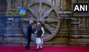 बता दें कि जी20 शिखर सम्मेलन में जब प्रधानमंत्री नरेंद्र मोदी ने जी20 शिखर सम्मलेन में हिस्सा ले रहे नेताओं का स्वागत किया तो उनके पीछे कोणार्क का सूर्य मंदिर का चक्र दिखा। ओडिशा के कोणार्क सूर्य मंदिर में पहिये की प्रतिकृतियां और नृत्य करती महिलाओं की मूर्तियों के सामने शनिवार को नई दिल्ली में भारत मंडपम अंतर्राष्ट्रीय प्रदर्शनी और कन्वेंशन सेंटर में जी20 नेताओं के शिखर सम्मेलन में विश्व नेताओं और विदेशी प्रतिनिधियों का स्वागत हुआ। प्रधानमंत्री नरेंद्र मोदी ने जी20 शिखर सम्मेलन में पहुंचे विश्व नेताओं को शुभकामनाएं दीं।