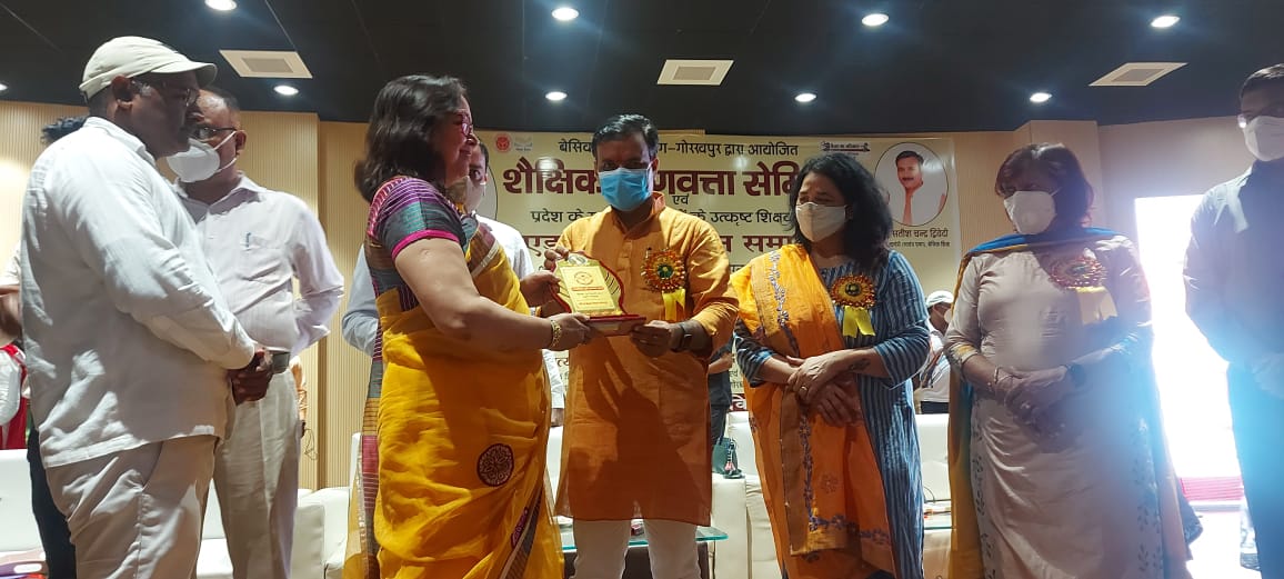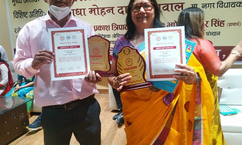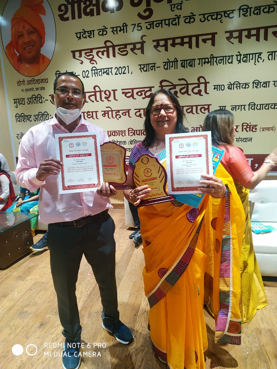 बेसिक शिक्षा मंत्री उत्तर प्रदेश सरकार द्वारा शिक्षक मीरा शर्मा व प्रमोद कुमार एडुलीडर्स सम्मान से सम्मानित