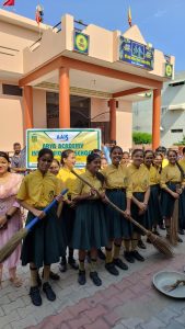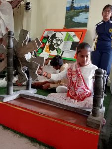 दिनाँक 02 अक्टूबर 2023 को विद्यालय में महात्मा गाँधी एवं श्री लाल बहादुर शास्त्री जयन्ती मनाई गई। जिसमें विद्यालय की प्रधानाचार्या श्रीमती सोनिका आर्य जी एवं प्रबन्धक श्री सुघोष आर्य जी ने प्राकृतिक स्वच्छता हेतु यज्ञ किया । यज्ञ के उपरांत ध्वजारोहण किया गया । कार्यक्रम के मुख्य अतिथि डॉ अ. कीर्तिवर्धन जी ने गाँधी जी एवं शास्त्री जी के चित्र पर पुष्पांजलि अर्पित किये । बच्चो ने झांकियो जैसे दांडी मार्च,असहयोग आंदोलन, नमक आन्दोलन चित्रण के माध्यम से गाँधी जी और शास्त्री को याद करते हुए अपनी श्रद्धान्जलि अर्पित की । बच्चो ने इसके साथ साथ एक घंटा एक साथ स्वच्छता मुहीम में राधा माधव मंदिर A2Z कॉलोनी में सफाई करके उसके प्रति लोगो को जागरूक भी किया । प्रधानाचार्या जी ने गाँधी जी के विचारों से प्रेरणा ले और सत्य एवं अहिंसा विषय पर अपने विचार रखे।डॉ अ कीर्तिवर्धन जी ने अपने उद्धबोधन सभी झांकियो की मुक्त कंठ से प्रशंसा की,बच्चों को शास्त्री जी और गांधी जी के जीवन से प्रेरणा लेने का आह्वाहन किया। कार्यक्रम के अंत में अतिथि को गांधी जी की प्रतिमा भेंट कर समानित किया गया।