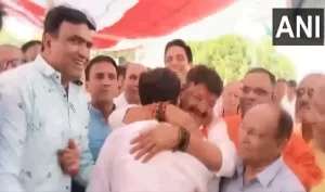 चुनावी राज्य मध्य प्रदेश में राजनीतिक हलचल के बीच, कांग्रेस विधायक संजय शुक्ला ने इंदौर में एक कार्यक्रम के दौरान अपने दावेदार, भाजपा नेता कैलाश विजयवर्गीय के पैर छूते हुए एक पल की सांस ली। एक वीडियो जो अब सोशल मीडिया पर व्यापक रूप से साझा किया जा रहा है, उसमें कांग्रेस विधायक को इंदौर में एक कार्यक्रम में मौजूद विजयवर्गीय की ओर बढ़ते और उनके पैर छूते देखा जा सकता है। भाजपा नेता ने भी शुक्ला की पीठ थपथपाई। गौरतलब है कि विजयवर्गीय को भारतीय जनता पार्टी ने इंदौर-1 विधानसभा क्षेत्र से टिकट दिया है, जहां से शुक्ला वर्तमान विधायक हैं। कांग्रेस ने 230 सदस्यीय मध्य प्रदेश विधानसभा चुनाव के लिए अभी तक अपने उम्मीदवारों की सूची जारी नहीं की है, जबकि सत्तारूढ़ भाजपा पहले ही उम्मीदवारों की दो सूचियों की घोषणा कर चुकी है।