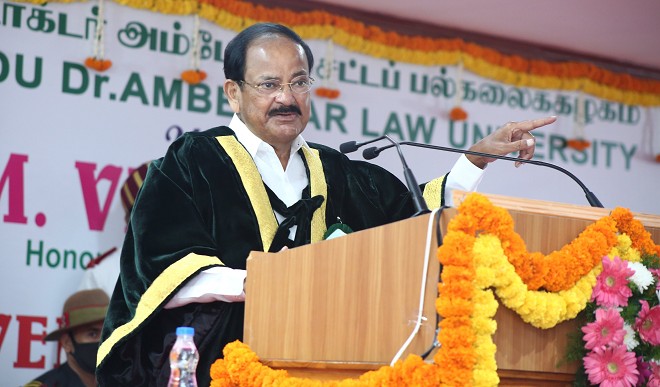 डा आंबेडकर विधि विश्वविद्यालय के 11वें दीक्षांत समारोह को संबोधित करते हुये नायडू ने यहां कहा कि सार्वजनिक जीवन में और ऊंचे पदों पर आसीन लोगों को उच्च मानकों को बनाये रखते हुये लोगों के लिये उदाहरण पेश करना चाहिये। नायडू ने कहा, ‘‘हिमाचल प्रदेश विधानसभा एवं कुछ अन्य राज्यों में हाल ही में जो कुछ हुआ है, उससे मैं दुखी हूं। मैं सभी जन प्रतिनिधियों से आग्रह करता हूं कि वे हमेशा हर मंच पर सभ्य और गरिमापूर्ण तरीके से आचरण करें।’’ राज्यसभा के सभापति ने कहा कि विधानसभा की कार्यवाही में व्यवधान एवं रूकावट डालने से किसी भी उद्देश्य की पूर्ति नहीं होगी और सबको यह समझना चाहिये। उन्होंने कहा कि उन्हें यह मालूम होना चाहिये कि हर समस्या का समाधान है- चर्चा, बहस एवं निर्णय।
