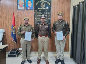आज दिनांक 19.01.2024 को पुलिस कार्यालय में वरिष्ठ पुलिस अधीक्षक श्री अभिषेक सिंह द्वारा है0का0 404 उमेश कुमार व का0 2068 राहुल यादव द्वारा किए गए उपरोक्त सूझबूझ भरे कार्य की भूरि-भूरि प्रशंसा करते उनका उत्साहवर्धन किया गया तथा उन्हें प्रशस्ति पत्र देकर सम्मानित किया गया ।