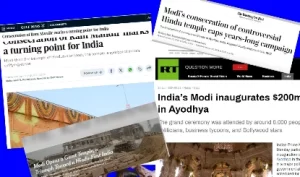22 जनवरी 2024 की तारीख हमेशा के लिए इतिहास के पन्नों में दर्ज हो चुकी है। उत्तर प्रदेश के अयोध्या में भगवान राम की प्राण प्रतिष्ठा का कार्यक्रम संपन्न हो चुका है। प्रधानमंत्री नरेंद्र मोदी और राष्ट्रीय स्वयंसेवक संघ के प्रमुख मोहन भागवत समेत कई अतिथियों ने गर्भ गृह में पूजा-अर्चना की और प्राण प्रतिष्ठा समारोह के हिस्सेदार रहे। राम मंदिर पर विदेशी मीडिया में भी खूब चर्चा हुई। अमेरिकी मीडिया में राम मंदिर को लेकर खूब खबरें छपी हैं। न्यूयॉर्क टाइम्स ने अपनी रिपोर्ट में लिखा की मोदी ने भव्य मंदिर का उद्घाटन किया और हिंदू फर्स्ट इंडिया की जीत हुई। हिंदू राष्ट्रवादियों के लिए ये विजय का क्षण है। जिनकी राजनीति में कोई दिलचस्पी नहीं है उनके लिए भी ये जश्न का मौका है।