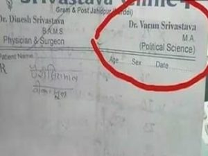 वायरल होता ये प्रिस्क्रिप्शन श्रीवास्तव क्लिनिक का है. इसमें क्लिनिक का एड्रेस जाहिदपुर, हरदोई लिखा है. मामला पुराना बताया जा रहा है. इस क्लिनिक में दो डॉक्टर्स प्रैक्टिस करते थे. एक डॉ दिनेश श्रीवास्तव, जो बीएएमएस कर फिजिशियन और सर्जन बन गया था. और दूसरे ने तो पॉलिटिकल साइंस में एमए करने के बाद अपने नाम के आगे डॉ लगा लिया था. ये दोनों फर्जी डिग्री लेकर आराम से प्रैक्टिस कर रहे थे. हालांकि, जब मामले का खुलासा हुआ तब डॉ दिनेश श्रीवास्तव ने बताया था कि उन्हें इस बात की कोई जानकारी नहीं है कि उनके नाम से हरदोई में कोई क्लिनिक है.