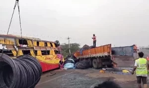 Toll Plaza के डिवाइडर से टकराई तीर्थयात्रियों से भरी बस