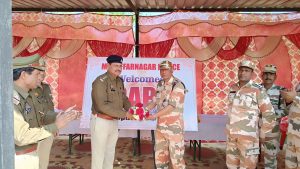 जनपद मुजफ्फरनगर में आगामी लोकसभा चुनाव-2024 को सकुशल सम्पन्न कराने व सुरक्षा व्यवस्था सुदृढ रखने हेतु केन्द्रीय सशस्त्र पुलिस बल आवंटित किया गया है। आज दिनांक 07.03.2024 जनपद मुजफ्फरनगर को आवंटित केन्द्रीय सशस्त्र बलों की आईटीबीपी की सी कम्पनी का जनपद मुजफ्फरनगर में आगमन हो गया है। सशस्त्र पुलिस बल के जनपद में आगमन पर मुजफ्फरनगर पुलिस द्वारा स्वागत समारोह का आयोजन किया गया। सुरक्षा बलों के स्वागत समारोह के दौरान क्षेत्राधिकारी नगर श्री सन्त प्रसाद उपाध्याय व प्रभारी निरीक्षक श्री ओमप्रकाश सिंह थाना सिविल लाईन द्वारा थानाक्षेत्र सिविल लाईन के अन्तर्गत मोटर ट्रैनिंग स्कूल, मेरठ रोड़ में फूल-माला व पुष्प गुच्छ देकर केन्द्रीय सशस्त्र सुरक्षा बल के जवानों का स्वागत किया गया। इस अवसर पर केन्द्रीय सुरक्षा बल व मुजफ्फरनगर पुलिस के अधिकारी/कर्मचारीगण मौजूद रहे।