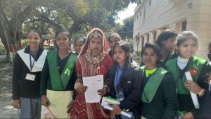 शादी के जोड़े में परीक्षा देने पहुंची छात्रा