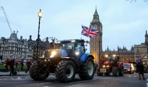 यूनियन जैक के झंडे या “घटिया आयात बंद करो” लिखे साइन लहराते हुए ट्रैक्टरों की एक कतार टेम्स नदी के किनारे और संसद भवन की ओर बढ़ी और जयकारे लगाते हुए और हॉर्न बजाते हुए पार्लियामेंट स्क्वायर का चक्कर लगाया। ब्रिटेन ने अब तक बड़े पैमाने पर किसानों का विरोध प्रदर्शन नहीं देखा है, जिसने फ्रांस और अन्य यूरोपीय देशों के शहरों को जाम कर दिया है। 27 देशों के यूरोपीय संघ के किसानों ने अनावश्यक नौकरशाही नियमों, स्वच्छ हवा और मिट्टी के लक्ष्य और विदेशों से अनुचित प्रतिस्पर्धा के खिलाफ विरोध प्रदर्शन किया है, जो उन्हें दिवालियापन की ओर ले जा रहा है। ब्रिटेन के यूरोपीय संघ से बाहर निकलने से ब्रिटेन की कृषि पर भारी असर पड़ा है, जिसने ब्रिटेन को ब्लॉक के मुक्त व्यापार क्षेत्र और कृषि नियमों के जटिल जाल से बाहर कर दिया है।