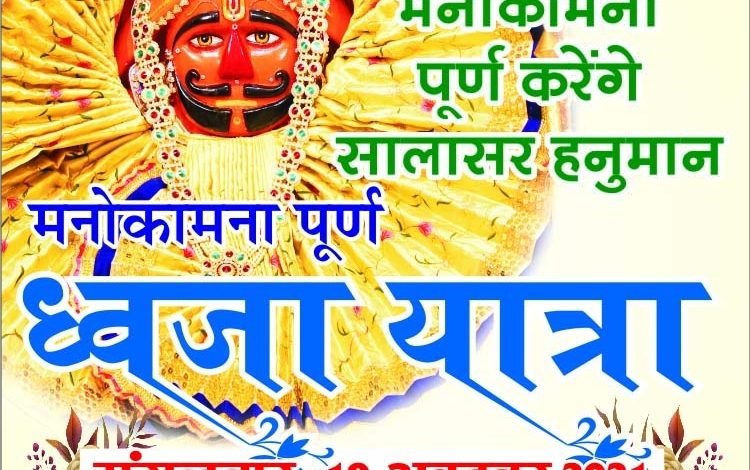 श्री सालासर बालाजी धाम मुजफ्फरनगर द्वारा “शरद पूर्णिमा” के शुभावसर पर 19 अक्टूबर दिन मंगलवार को प्रातः 9 बजे से आयोजित होगी पैदल मनोकामना पूर्ण ध्वजा यात्रा