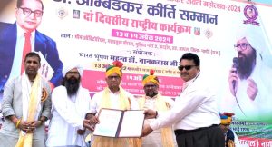राजस्थान के नागौर में अखिल भारतीय कबीर मठ सतगुरु कबीर आश्रम सेवा संस्थान द्वारा भारत रत्न बाबा साहब डा. भीमराव आंबेडकर की 133 वीं जयंती पर डा. आंबेडकर कीर्ति सम्मान-2024 का आयोजन किया गया। जिसमें यूपी के मुजफ्फरनगर जिले से पत्रकार रोहिताश्व कुमार वर्मा को डा. आंबेडकर कीर्ति अवार्ड से सम्मानित किया गया।