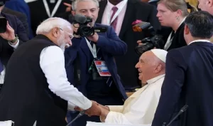 प्रधानमंत्री नरेंद्र मोदी ने इटली के अपुलिया में जी7 शिखर सम्मेलन से इतर पोप फ्रांसिस से मुलाकात की है। मोदी ने 2021 में वेटिकन में पोप फ्रांसिस से मुलाकात की थी, जिसमें दोनों ने कोविड-19 प्रकोप सहित कई मुद्दों पर चर्चा की थी। वह निवर्तमान पोप से मिलने वाले पहले प्रधानमंत्री थे, जो 2013 में कैथोलिक चर्च के प्रमुख बने। प्रधानमंत्री नरेंद्र मोदी ने पोप फ्रांसिस को भारत आने का न्योता दिया और कहा कि वह लोगों की सेवा के प्रति पोप की प्रतिबद्धता की सराहना करते हैं। मोदी और पोप फ्रांसिस नेदक्षिणी इटली के अपुलिया में जी7 शिखर सम्मेलन के आउटरीच सत्र में गर्मजोशी से मुलाकात की। उन्होंने विश्व के अन्य नेताओं के साथ महत्वपूर्ण वैश्विक मुद्दों पर चर्चा की। मोदी ने एक्स पर एक पोस्ट में कहा कि जी7 शिखर सम्मेलन के दौरान पोप फ्रांसिस से मुलाकात की। मैं लोगों की सेवा करने और हमारे ग्रह को बेहतर बनाने के प्रति उनकी प्रतिबद्धता की सराहना करता हूं। साथ ही उन्हें भारत आने का निमंत्रण भी दिया।