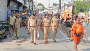 अवगत कराना है कि कांवड़ यात्रा-2024 को सकुशल सम्पन्न कराने, सुरक्षा व्यवस्था सुदृढ़ बनाए रखने तथा कानून एवं शांति व्यवस्था अक्षुण्ण बनाए रखने तथा कांवड़ियों को किसी प्रकार की असुविधा न हो इसके लिए आज दिनांक 27.07.2024 को अपर पुलिस महानिदेशक मेरठ जोन, मेरठ धुवकांत ठाकुर एवं वरिष्ठ पुलिस अधीक्षक मुजफ्फरनगर अभिषेक सिंह महोदय द्वारा पुलिस अधिकारीयों के साथ थानाक्षेत्र कोतवाली नगर के अन्तर्गत स्थित शिव चौक, मीनाक्षी चौक, अस्पताल तिराहा, रूडकी रोड आदि स्थानों पर कांवड़ मार्ग का निरीक्षण किया गया। साथ ही उनके द्वारा कांवड़ ड्यूटी पर तैनात पुलिसकर्मियों को सतर्कतापूर्वक ड्यूटी करने, कांवड यात्रियों के साथ शालीनता से व्यवहार करने एंव उनकी हरसम्भव सहायता करने तथा डायवर्जन प्लान को कडाई से लागू कराते हुए ट्रैफिक व्यवस्था को दुरुस्त रखने, कांवडियों/श्रद्धालुओं के सुरक्षित आवागमन को सुनिश्चित करने, यदि किसी कांवड़ यात्री के साथ कोई अप्रिय घटना होती है अथवा उनकी तबीयत खराब होती है तो तत्काल इसका संज्ञान लेकर अतिशीघ्र मेडिकल सहायता उपलब्ध कराने तथा छोटी/बडी सूचना से तत्काल उच्चाधिकारीगण को अवगत कराये। साथ ही उनके द्वारा कांवड मार्ग पर ड्रोन कैमरो से निगरानी सुनिश्चित करने हेतु निर्देशित किया गया। साथ ही कांवडियों से वार्ता कर उनकी कुशलक्षेम भी ली गयी।