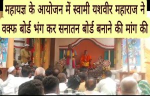 जनपद मुजफ्फरनगर की बघरा स्थित योग साधना यशवीर आश्रम के 22वें वार्षिक महोत्सव के अवसर पर आश्रम में संकट मोचन मनोकामना पूर्ण प्राचीन महायज्ञ का आयोजन किया गया। यह महायज्ञ 51 किलो शुद्ध देसी घी एवं स्वामी यशवीर महाराज व ब्रह्मचारी मृगेंद्र द्वारा वेद के पवित्र मंत्रों के मंत्रों उच्चारण के साथ विधि विधान पूर्वक किया गया। महायज्ञ के उपरांत विशाल भंडारे का आयोजन किया गया जिसमें सभी भक्तों ने प्रसाद ग्रहण किया। इसी दौरान कट्टर हिंदुत्व की आवाज बन चुके स्वामी यशवीर महाराज ने वक्फ बोर्ड को भंग कर सनातन बोर्ड बनाने की बड़ी मांग उठाई। महायज्ञ में शामिल हुए विश्व हिंदू परिषद के राष्ट्रीय संगठन महामंत्री मिलिंद परांडे ने कहा कि हिंदुओं का जन्म प्रतिशत घट रहा है और मुसलमान का बढ़ रहा है यह एक चिंताजनक विषय है उन्होंने कहा हर घर में कम से कम दो तीन बच्चे अवश्य होने चाहिए। महायज्ञ में हिंदू संगठनों के पदाधिकारी, सदस्य, व राजनीतिक व्यक्तियों समेत बड़ी संख्या में गणमान्य व्यक्ति भी मौजूद रहे।