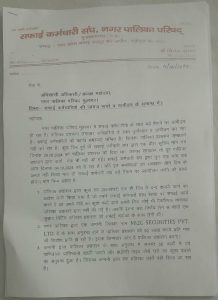 घरों से कूड़ा उठाने वाली MI2C कंपनी के खिलाफ सफाई कर्मचारी संघ ने खोला मोर्चा, कर्मचारी संघ ने आरोप लगाते हुए कहा कि कंपनी आने से शहर में गंदगी बढ़ी और कंपनी अपने कर्मचारियों के फंड में घोटाला कर रही है फरवरी से अब तक ईपीएफ ईएसआई फंड नही दिया है, वैसे जब से कंपनी नगर में आई है तब से विवादों में घिरी हुई है,अब देखना होगा इस मामले में नगर पालिका का क्या कम होता है