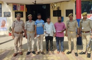 जनपद मुजफ्फरनगर में साइबर अपराध पर नियंत्रण एवं साइबर अपराधियो की गिरफ्तारी हेतु वरिष्ठ पुलिस अधीक्षक अभिषेक सिंह द्वारा चलाए जा रहे अभियान के अन्तर्गत पुलिस अधीक्षक नगर सत्यनारायण प्रजापत के निर्देशन में क्षेत्राधिकारी सदर राजु कुमार साव के निकट पर्यवेक्षण तथा प्रभारी निरीक्षण थाना छपार विकास यादव के कुशल नेतृत्व में दिनांक 06.10.2024 को थाना छपार पुलिस द्वारा साइबर फ्रॉड करने वाले 03 अभियुक्तगण को बिजली घर के पास नई कालौनी के गेट के पास से गिरफ्तार किया गया । अभियुक्तगण के कब्जे से 03 मोबाईल, नगदी तथा दस्तावेज बरामद किए गए हैं । अभियुक्तगण की गिरफ्तारी एवं बरामदगी के सम्बन्ध में थाना छपार पुलिस द्वारा अग्रिम विधिक कार्यवाही की जा रही है ।