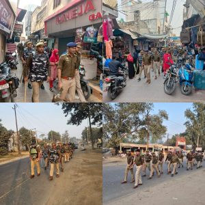 जनपद मुजफ्फरनगर में कानून एवं शान्ति व्यवस्था बनाए रखने तथा सुरक्षा व्यवस्था सुदृढ रखने हेतु आज दिनांक 24.11.2024 को समस्त क्षेत्राधिकारियों व थाना प्रभारियों द्वारा अपने-अपने सर्किल/थानाक्षेत्रों में दंगा नियंत्रण उपकरणों के साथ बाजारों, मुख्य चौराहों/मार्गों, भीड़-भाड़ एवं संवेदनशील स्थानों आदि पर पुलिस बल के साथ फ्लैग मार्च करते हुए सुरक्षा व्यवस्था का जायजा लिया। इस दौरान स्थानीय लोगों से वार्ता कर सोशल मीडिया पर किसी भी प्रकार की भडकाऊ/गलत/अशोभनीय पोस्ट शेयर न करने, किसी भी भ्रामक पोस्ट की पुष्टि पुलिस/प्रशासन से करने, किसी भी कानून विरोधी गतिविधि का हिस्सा ना बनने की अपील की गई। फ्लैग मार्च के उपरान्त पुलिसबल को ब्रीफ करते हुए सतर्कता पूर्वक ड्यूटी करने, भीडभाड वाले स्थान/मिश्रित आबादी वाले क्षेत्रों में लगातार गश्त करने, असामाजिक तत्वों पर तत्काल विधिक कार्यवाही करने, संदिग्ध व्यक्ति/वाहनों की सघन चेकिंग करने सहित अन्य आवश्यक दिशा-निर्देशों से अवगत कराया गया।