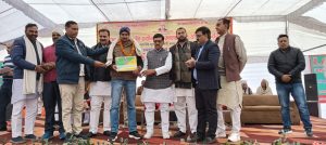 कृषि तकनीकी प्रबंध अभिकरण जनपद मु.नगर के तत्वाधान में *सब मिशन ऑन एग्रीकल्चर एक्सटेंशन योजनांतर्गत किसान सम्मान दिवस एवं कृषि मेला* भारत रत्न,पूर्व प्रधानमंत्री स्व.चरण सिंह जी की जयंती पर *प्रदर्शनी स्थल मु.नगर** पर आयोजित हुआ। कार्यक्रम का शुभारंभ मुख्य अतिथि के रूप में जिला पंचायत अध्यक्ष डा वीरपाल निर्वाल और पूर्व विधायक उमेश मलिक ने फीता काटकर किया । सर्व प्रथम किसान मसीहा स्व चौधरी चरण सिंह जी के चित्र पर दीप प्रज्वलित और पुष्प अर्पित कर किया ।इस अवसर पर प्रगति शील किसानों को गेहूं ,गन्ना उरद ,धान ,तिलहन में श्रेष्ठ उत्पाद के लिए प्रशस्ति पत्र और अंगवस्त्र भेंट कर सम्मानित किया गया उपस्थित किसान बंधुओं को संबोधित करते हुए डा निर्वाल ने कहा कि वर्तमान केंद्र और राज्य सरकार ने कृषि क्षेत्र और किसान को प्राथमिकता पर रखकर योजनाएं बना रही है ।सरकार किसानों के प्रति पूरी तरह गंभीर और संवेदन शील है । सरकार किसानों को आधुनिक उपकरण , उन्नत बीज , सड़क ,बिजली जैसी मूल सुविधाओं से जोड़कर किसानों की आय बढ़ाने का भरसक प्रयास कर रही है । जिला अधिकारी उमेश मिश्रा ने कहा कि प्रयोग धर्मी किसानों का प्रोत्साहन किया जा रहा है ।कृषि प्रदर्शनी में स्थापित स्टालों का भी अतिथियों ने निरीक्षण किया । कार्यक्रम में पूर्व विधायक उमेश मलिक ने भी किसानों को संबोधित किया । कार्यक्रम में कृषि उप निदेशक ,जिला पंचायत सदस्य डॉ विपिन त्यागी , अमित रावल सहित बड़ी संख्या में किसान उपस्थित रहे।