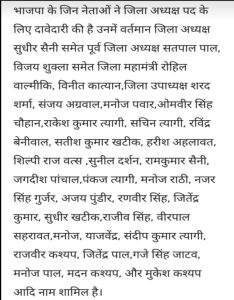 *मुज़फ्फरनगर- भाजपा जिला अध्यक्ष पद के लिए 36 भाजपाईयो ने किया नामांकन, देखिए लिस्ट👇*