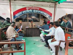 मुज़फ्फरनगर – जिलाधिकारी उमेश मिश्रा के निर्देश पर थाना समाधान दिवस का आयोजन हुआ जिसमें थाना खतौली पर उपजिलाधिकारी खतौली मोनालिसा जौहरी की अध्यक्षता में थाना समाधान दिवस का आयोजन हुआ जिसमें थाना प्रभारी, समस्त राजस्व निरीक्षक, लेखपाल आदि थाने पर उपस्थित रहे। थाना समाधान दिवस में कुल 02 शिकायते प्राप्त हुई जिसमें 01 शिकायतों का मौके पर ही निस्तारण करवा दिया गया शेष 01 शिकायत संबंधित को जांच हेतु प्रेषित की गई। एसडीएम मोनालिसा जौहरी ने थाना खतौली पर शिकायत पंजिका का अवलोकन किया जिसमें पूर्व में आई शिकायतों की निस्तारण आख्या की संतुष्टि के संबंध में शिकायतकर्ता से दूरभाष पर बात की गई कि क्या उनकी शिकायतों का निस्तारण सही हुआ है अथवा नही। जिस पर शिकायतकर्ता द्वारा संतुष्टि दी गई कि उनकी शिकायत का निस्तारण गुणवत्तापूर्ण किया गया है वह शिकायत से संतुष्ट है। एसडीएम खतौली मोनालिसा जौहरी ने थाना प्रभारी को निर्देश दिए कि सभी शिकायतों का गुणवत्तापूर्ण निस्तारण करें लंबित विवेचनाओं को नियमानुसार समय अवधि के भीतर पूर्ण करें थाने में खड़े वाहनों की नियमानुसार नीलामी की प्रक्रिया पूर्ण कराए तथा जानसठ चौराहे पर लग रहे जाम के संबंध में भी एसडीएम खतौली ने निर्देश देते हुए कहा कि वहां पर जाम लगने की शिकायत आ रही है जाम लगाने वाले वाहनों पर वैधानिक कार्रवाई करें एसडीएम ने सभी लेखपालों को थाना दिवस के उपरांत क्षेत्र में भेज दिया और कहा कि आज सभी लोग अपने-अपने क्षेत्र में जाकर यह सुनिश्चित कर लें कि उनके क्षेत्र की ग्राम समाज पर किसी प्रकार का कोई अवैध कब्जा/ अतिक्रमण तो नहीं है और शाम तक मुझे रिपोर्ट प्रेषित करें कि उनके क्षेत्र की समस्त ग्राम समाज पर कोई अवैध कब्जा नही है सरकारी भूमि कब्जा मुक्त है।