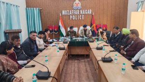 मुजफ्फरनगर पुलिस जनपद में व्यापारियों व आम नागरिकों की सुरक्षा के लिए प्रतिबद्ध है तथा समय समय पर व्यापारियों व ट्रान्सपोर्टर संघ के पदाधिकारियों के साथ गोष्ठी की जाती है। इसी क्रम में आज दिनांक 23.01.2025 को पुलिस अधीक्षक अपराध प्रशान्त कुमार प्रसाद द्वारा रिजर्व पुलिस लाइन सभागार में व्यापार मंडल के पदाधिकारियों के साथ व्यापारी सुरक्षा गोष्ठी आयोजित की गई। इस दौरान व्यापार मंडल के पदाधिकारियों सहित पुलिस अधीक्षक यातायात अतुल कुमार चौबे, क्षेत्राधिकारी नगर राजू कुमार साव, क्षेत्राधिकारी नई मण्डी रूपाली राय चौधरी मौजूद रहे।