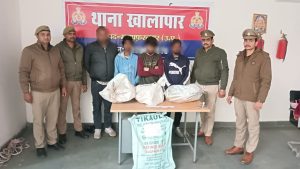 जनपद मुजफ्फरनगर में शातिर चोर/लुटेरे अभियुक्तगण की गिरफ्तारी हेतु पुलिस उपमहानिरीक्षक/वरिष्ठ पुलिस अधीक्षक अभिषेक सिंह के निर्देशन में चलाये जा रहे अभियान के अन्तर्गत पुलिस अधीक्षक नगर सत्यनारायण प्रजापत के निकट पर्यवेक्षण में क्षेत्राधिकारी सदर राजू कुमार साव तथा प्रभारी निरीक्षक थाना खालापार महावीर सिंह चौहान के कुशल नेतृत्व में आज दिनांक 28.01.2025 को थाना खालापार पुलिस द्वारा पानी खींचने के पंखा व इंजन चोरी के अभियोग का सफल अनावरण करते हुए 04 अभियुक्तगण को मुखबिर की सूचना पर गिरफ्तार किया गया। गिरफ्तार अभियुक्तगण के कब्जे/निशांदेही से चोरी किये गये इंजन के पार्टस, पानी खींचने का पंखा व अवैध शस्त्र बरामद किये गये। अभियुक्तगण की गिरफ्तारी व बरामदगी के सम्बन्ध में थाना खालापार पुलिस द्वारा अग्रिम विधिक कार्यवाही की जा रही है।