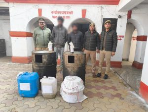 जनपद मुजफ्फरनगर में अवैध शराब का निर्माण/विक्रय करने वाले अभियुक्तगण की गिरफ्तारी हेतु पुलिस उपमहानिरीक्षक/वरिष्ठ पुलिस अधीक्षक अभिषेक सिंह के निर्देशन में चलाये जा रहे अभियान के अन्तर्गत पुलिस अधीक्षक ग्रामीण आदित्य बंसल के निकट पर्यवेक्षण में, क्षेत्राधिकारी देववृत वाजपेई तथा प्रभारी निरीक्षक थाना भोपा विजय सिंह के कुशल नेतृत्व में आज दिनांक 28.01.2025 को थाना भोपा पुलिस द्वारा अवैध कच्ची शराब का निर्माण करने वाले 02 शातिर अभियुक्तगण को मुखबिर की सूचना पर ग्राम अलमावाला के जंगल मे नाले के किनारे झाडियों से गिरफ्तार किया गया। गिरफ्तार अभियुक्तगण के कब्जे से प्लास्टिक की दो केन में 35 लीटर अवैध कच्ची शराब तथा शराब बनाने के उपकरण बरामद किये गये। अभियुक्तगण की गिरफ्तारी व बरामदगी के सम्बन्ध में थाना भोपा पुलिस द्वारा मु0अ0सं0- 27/2025 धारा 60(2) आबकारी अधिनियम पंजीकृत कर अग्रिम विधिक कार्यवाही की जा रही है।