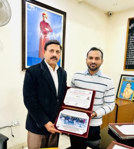 *मुजफ्फरनगर – राष्ट्रीय “बेस्ट ट्रेनी” अवार्ड पाने वाले शिक्षक को प्राचार्य ने किया सम्मानित*