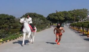 योग गुरु रामदेव की उम्र लगभग 60 साल है। लेकिन सोशल मीडिया पर बाबा रामदेव की वीडियो चर्चा का विषय बना हुआ है। इसमें वो घोड़े से भी तेज दौड़ रहे हैं। वो ऐसा इसलिए कर पा रहे हैं क्योंकि उन्होंने शीलाजीत खाई हुई है। योग गुरु के इस हैरतअंगेज बाबा रामदेव वायरल वीडियो को स्वानी रामदेव नाम के इंस्टाग्राम अकाउंट पर अपलोड कुछ देर पहले ही किया गया है। इस वीडियो को बाबा ने अपने सोशल मीडिया अकाउंट पर शेयर किया है। इसके साथ ही वीडियो के कैप्शन में लिखा है कि घोड़े की तरह तेज़ दौड़ने की ताक़त, स्ट्रॉग इम्यूनिटी, एंटी एजिंग और पावर चाहिए तो स्वर्ण शीलाजीत व इम्यूनोग्रिट गोल्ड खाइए। वीडियो में देखा जा सकता है कि, बाबा एक सफेद रंग के घोड़े के साथ काफी तेजी से दौड़ रहे हैं। हैरानी की बात ये है कि, वह इस रेस में जीत जाते हैं।