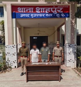 जनपद मुजफ्फरनगर में शातिर अभियुक्तगण की गिरफ्तारी हेतु पुलिस उपमहानिरीक्षक/वरिष्ठ पुलिस अधीक्षक अभिषेक सिंह के निर्देशन में चलाये जा रहे अभियान के अर्न्तगत पुलिस अधीक्षक ग्रामीण आदित्य बसंल के निकट पर्यवेक्षण में, क्षेत्राधिकारी बुढ़ाना गजेन्द्र पाल सिंह एवं थानाध्यक्ष शाहपुर दीपक चौधरी के कुशल नेतृत्व में दिनांक 11.03.2025 को थाना शाहपुर पुलिस द्वारा 02 शातिर अभियुक्तगण को दौराने चैकिंग पलड़ी बाईपास पुलिया से गिरफ्तार किया गया। अभियुक्तगण के कब्जे से अवैध शस्त्र बरामद किये गये है। अभियुक्तगण की गिरफ्तारी एवं बरामदगी के सम्बन्ध में थाना शाहपुर पुलिस द्वारा मु0अ0सं0 60/2025 धारा 3/5/25/27 आयुध अधिनियम पंजीकृत कर अग्रिम विधिक कार्यवाही की जा रही है।