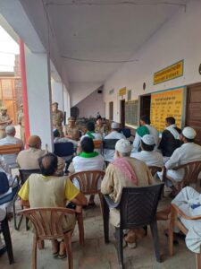पीस कमेटी की मीटिंग के दौरान थानाध्यक्ष तितावी श्री मानवेंद्र सिंह भाटी सहित पुलिस के अन्य अधिकारी/ कर्मचारीगण उपस्थित रहे।