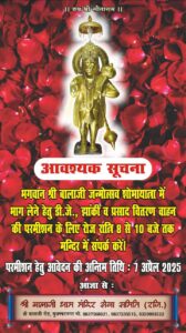 *आवश्यक सूचना – भगवान श्री बालाजी जन्मोत्सव शोभायात्रा में भाग लेने वाले डीजे,झांकी व प्रसाद वितरण वाहनों को लेनी होगी अनुमति*