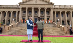 प्रधानमंत्री मोदी शुक्रवार शाम को श्रीलंका के कोलंबो पहुंचे जहां उनका गर्मजोशी से स्वागत किया गया और भंडारनायके अंतर्राष्ट्रीय हवाई अड्डे पर उनका स्वागत पांच शीर्ष श्रीलंकाई मंत्रियों ने किया, जिनमें विदेश मंत्री विजिता हेराथ, स्वास्थ्य मंत्री नलिंदा जयतिस्सा और मत्स्य पालन मंत्री रामलिंगम चंद्रशेखर शामिल थे। दिसानायके ने कहा कि मैंने श्रीलंका के इस रुख की पुष्टि की कि वह अपने भूभाग का उपयोग भारत की सुरक्षा और क्षेत्रीय स्थिरता के लिए किसी भी तरह से हानिकारक तरीके से नहीं होने देगा।