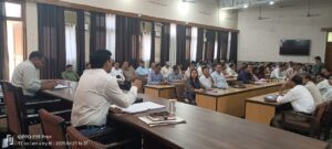 बैठक के उपरांत ई डिस्टिक मैनेजर प्रिंस जैन द्वारा ई-ऑफिस से संबंधित कार्यो को प्रोजेक्टर के माध्यम से ट्रेनिंग दी गई।