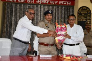 *जिला बार संघ मुजफ्फरनगर के पदाधिकारियों द्वारा वरिष्ठ पुलिस अधीक्षक मुजफ्फरनगर का पुष्प गुच्छ भेंट कर किया स्वागत, जिले से सम्बन्धित अहम बातों पर की गयी चर्चा*