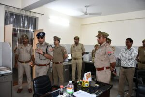 दिनांक 26.05.2025 को वरिष्ठ पुलिस अधीक्षक मुजफ्फरनगर श्री संजय कुमार द्वारा पुलिस अपराध शाखा कार्यालय का निरीक्षण किया गया। वरिष्ठ पुलिस अधीक्षक महोदय द्वारा पुलिस अधीक्षक अपराध कार्यालय, क्षेत्राधिकारी अपराध कार्यालय, साईबर थाना, मॉनिटरिंग सैल, विशेष जांच प्रकोष्ठ, साक्षी सुरक्षा सैल, ट्रान्सजेन्डर सैल, डीसीआरबी सैल, मिसिंग सैल, अंगुष्ठ छाप सैल, थाना ए0एच0टी0यू, विवेचना सैल व नारकोटिक सैल आदि शाखाओं का निरीक्षण किया गया। निरीक्षण के दौरान वरिष्ठ पुलिस अधीक्षक द्वारा शाखाओं में नियुक्त अधिकारी/कर्मचारियों को समय से कार्यालय में उपस्थित होकर पूर्ण मनोयोग से कार्य करने तथा कार्यालय रिकॉर्ड को अद्यावधिक रखने हेतु निर्देशित किया गया। वरिष्ठ पुलिस अधीक्षक द्वारा निरीक्षण के दौरान शाखाओं के अभिलेखों के रख-रखाव को चेक किया गया तथा साफ-सफाई रखने तथा राजकीय कार्य समय से सम्पादित करने हेतु सम्बन्धित को आवश्यक दिशा निर्देश दिये गये । वरिष्ठ पुलिस अधीक्षक द्वारा कार्यालय में नियुक्त अधिकारी/कर्मचारियों से उनकी समस्याओं के बारे में पूछा गया तथा सम्बन्धित को उनका निस्तारण करने हेतु निर्देशित किया गया। निरीक्षण के दौरान समस्त शाखा प्रभारी व शाखाओं में नियुक्त पुलिसकर्मी मौजूद रहे।