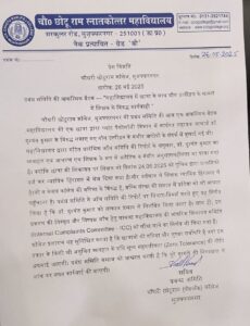 *चौधरी छोटू राम स्नातकोत्तर महाविद्यालय मुजफ्फरनगर द्वारा की गई आवश्यक बैठक, आरोपी शिक्षक को किया गया निलंबित*