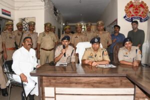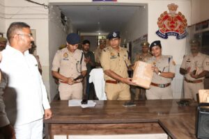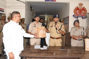 आज दिनांक 12.06.2025 को वादी अभियोग राजेश चौहान द्वारा थाना नई मण्डी पर उक्त सराहनीय कार्य करने तथा अभियुक्तगण को शीघ्र गिरफ्तार करने व बरामदगी के करने के लिये वरिष्ठ पुलिस अधीक्षक संजय कुमार वर्मा, पुलिस अधीक्षक नगर सत्यनारायण प्रजापत, क्षेत्राधिकारी नई मण्डी रूपाली राव, प्रभारी निरीक्षक थाना नई मण्डी दिनेश चन्द व थाना नई मण्डी पुलिस टीम को सम्मानित किया गया।